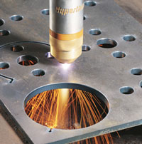 Système plasma manuel ou mécanisé pour le coupage et le gougeage du métal Données d'utilisation : Capacité de coupe Manuel Perçage mécanisé recommandée 12 mm (1/2") Maximale 19 mm (3/4") Grossière 25 mm (1") Capacité de gougeage Quantité d'enlèvement de métal à l'heure 2,8 kg Profondeur x largeur mm Applications Coupage manuel Gougeage Coupage mécanisé - Table X-Y - Systèmes de rails - Systèmes de tuyau Composants du Système standard Source de courant Torche manuelle T45v ou torche machine T45m Consommables supplèmentaires pour le coupage et le gougeage Câble de retour avec connecteur de pièce, 20' (6 m) Bretelle de transport |
