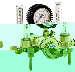 Détendeurs débitlitres tarés à 3,5 bars avec colonne (rotamètre) graduée de 0 à 15 ou 30 l/mn permet une très bonne précision du débit de gaz idéal pour le soudage TIG des inox et aluminium. Existe en version OX en 7 et 15 l/h. Détendeur 054 201 |